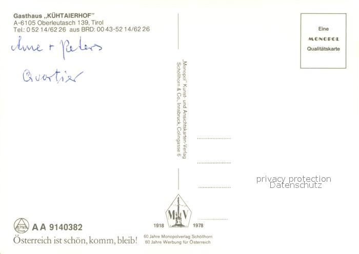 13237364 Oberleutasch Gasthaus Kuehtaierhof Winterlandschaft Alpen postalisch nicht gelaufen Erhaltung siehe scans [FriedD77] KatCode: 11390