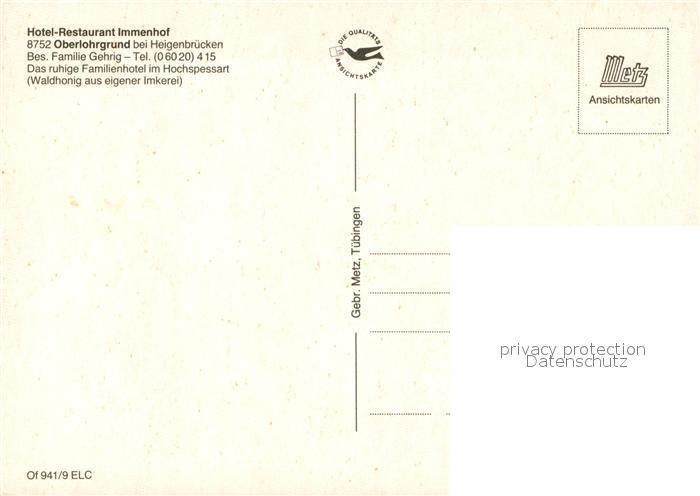 73569795 Oberlohrgrund Hotel Restaurant Immenhof postalisch nicht gelaufen Erhaltung siehe scans [WerneD78] KatCode: 11110009671128