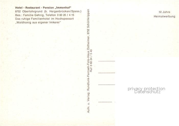 73787927 Oberlohrgrund Hotel Restaurant Pension Immenhof postalisch nicht gelaufen Erhaltung siehe scans [FriedD77] KatCode: 11110009671128