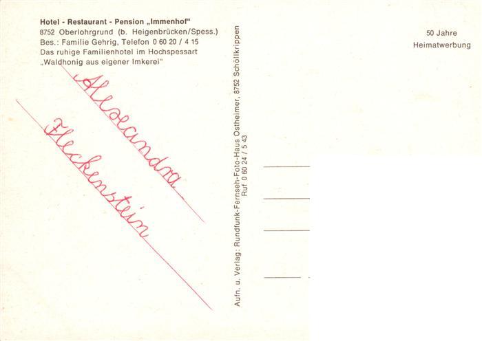 73946693 Oberlohrgrund Hotel Restaurant Pension Immenhof postalisch nicht gelaufen Erhaltung siehe scans [FriedD77] KatCode: 11110009671128