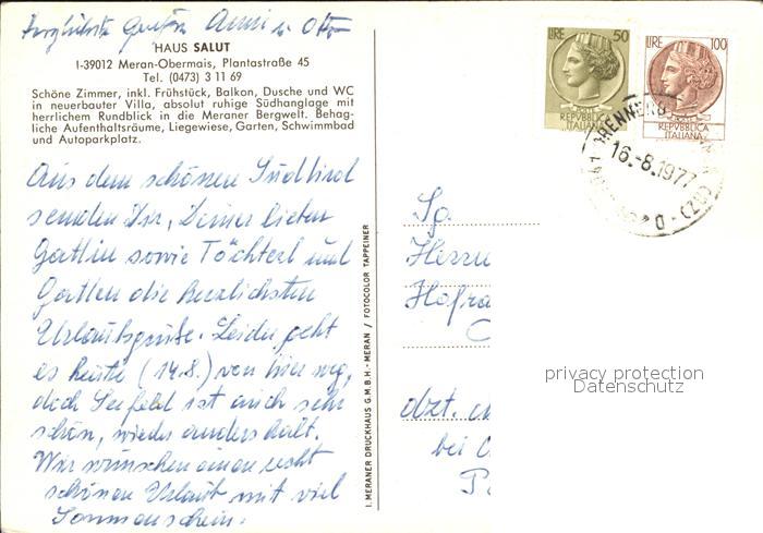 old postcard Obermais Meran Haus Salut postalisch gelaufen Erhaltung siehe scans