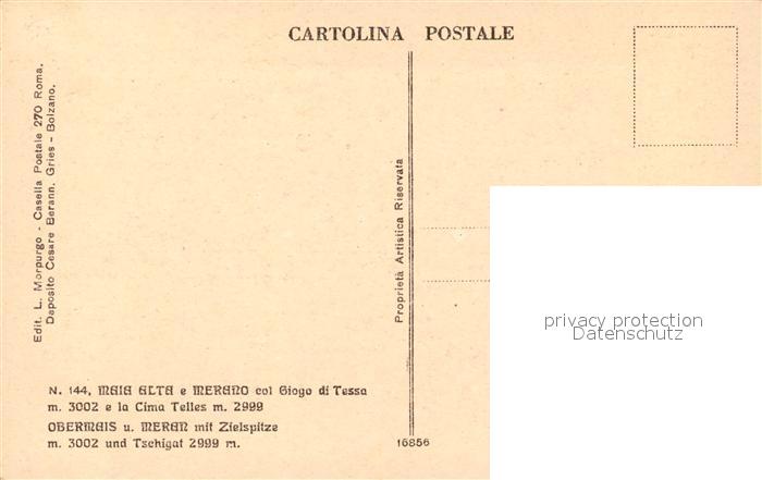Obermais Meran mit Zielspitze und Tschigat Texelgruppe postalisch nicht gelaufen Erhaltung siehe scans [FriedD77]