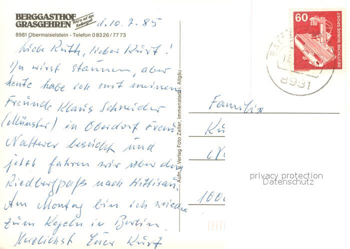 73716458 alte Postkarte Obermaiselstein Berggasthof Grasgehren Terrasse Gaststube Zimmer postalisch gelaufen Erhaltung siehe scans [WerneD78] KatCode: 11110009780131
