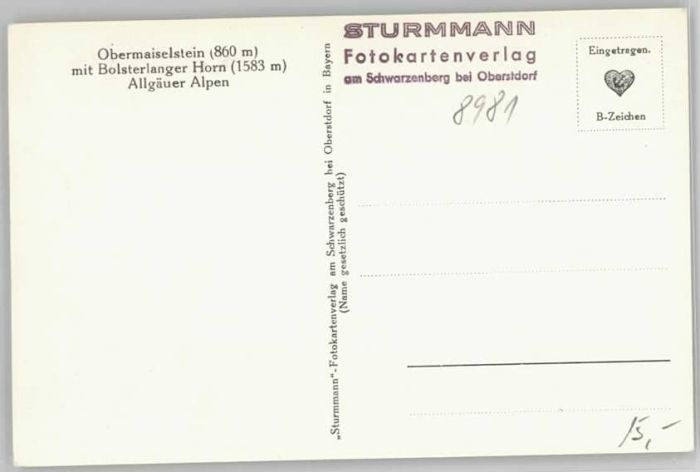 40227300 Obermaiselstein Bolsterlanger Horn KatCode 11110009780131