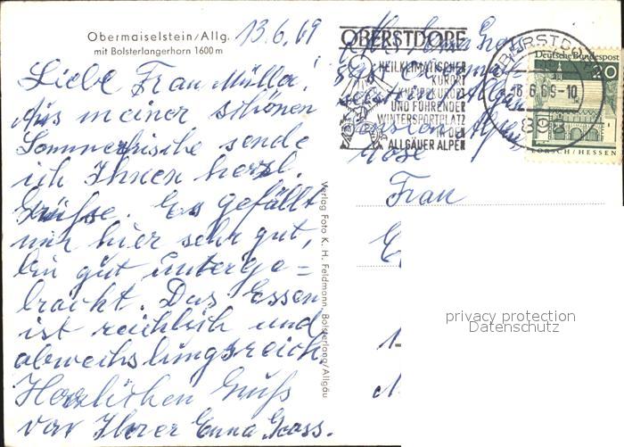72468387 alte Postkarte Obermaiselstein Bolsterlangerhorn postalisch gelaufen Erhaltung siehe scans KatCode: 11110009780131