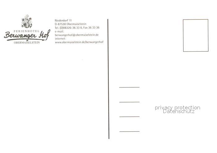 72962727 Obermaiselstein Ferienhotel Berwanger Hof postalisch nicht gelaufen Erhaltung siehe scans [NatalD47] KatCode: 11110009780131