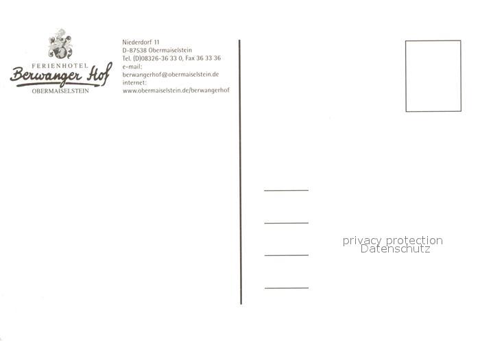 72959722 Obermaiselstein Ferienhotel Berwanger Hof postalisch nicht gelaufen Erhaltung siehe scans [NatalD47] KatCode: 11110009780131