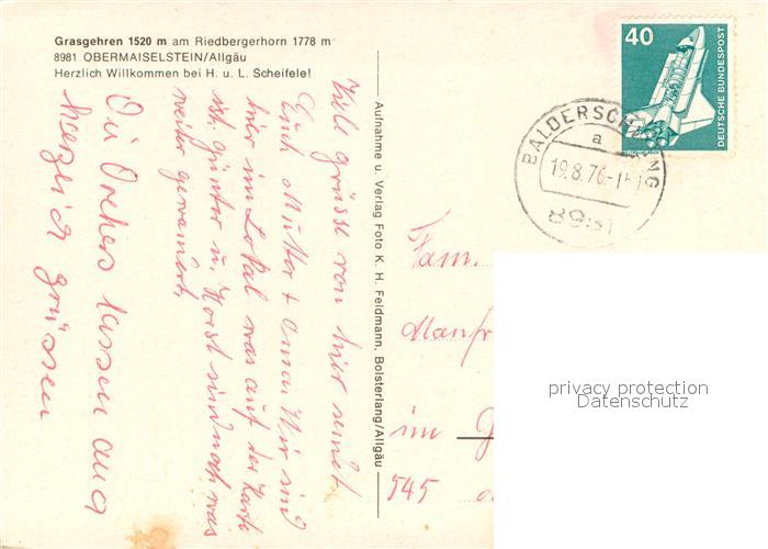 73632797 alte Postkarte Obermaiselstein Grasgehren am Riedbergerhorn postalisch gelaufen Erhaltung siehe scans [WerneD78] KatCode: 11110009780131