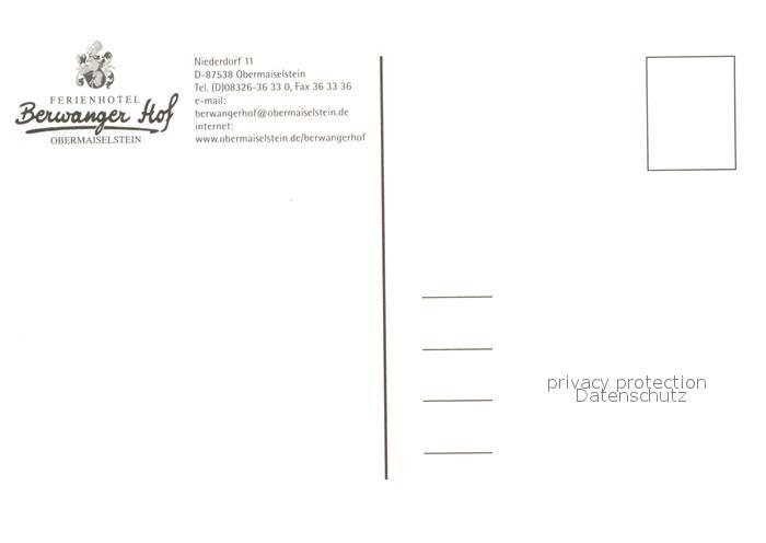 72962729 Obermaiselstein Hotel Berwanger Hof postalisch nicht gelaufen Erhaltung siehe scans [NatalD47] KatCode: 11110009780131