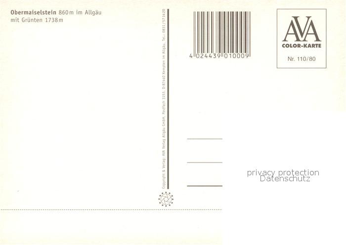 73227321 Obermaiselstein mit Gruenten postalisch nicht gelaufen Erhaltung siehe scans [LiesaD40] KatCode: 11110009780131