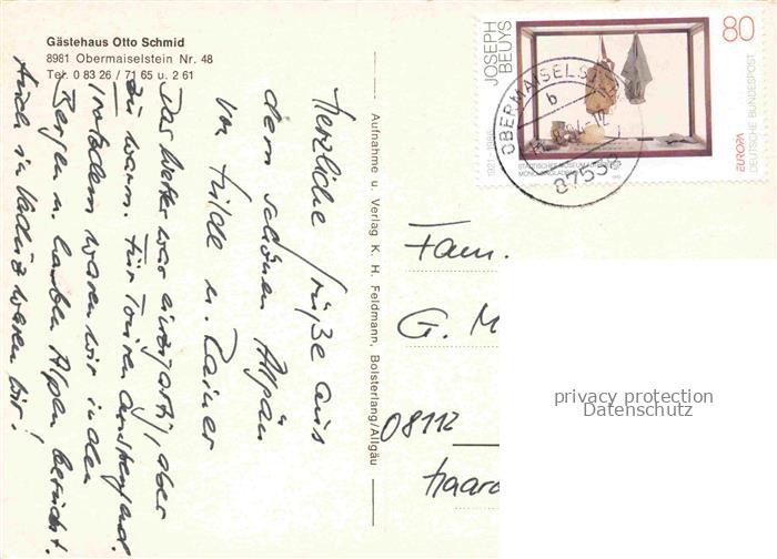74022755 alte Postkarte Obermaiselstein Oberallgaeu Bayern Gaestehaus Otto Schmid postalisch gelaufen Erhaltung siehe scans [FriedD77] KatCode: 11110009780131