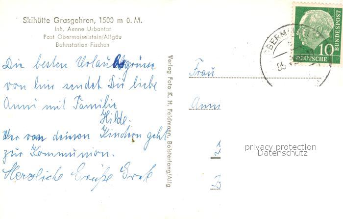 73035602 alte Postkarte Obermaiselstein Skihuette Grasgehren postalisch gelaufen Erhaltung siehe scans [KathaD81] KatCode: 11110009780131