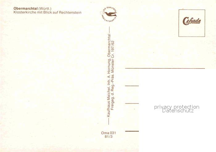 72831762 Obermarchtal Klosterkirche mit Blick auf Rechtenstein Fliegeraufnahme postalisch nicht gelaufen Erhaltung siehe scans [FriedD77] KatCode: 11110008425090