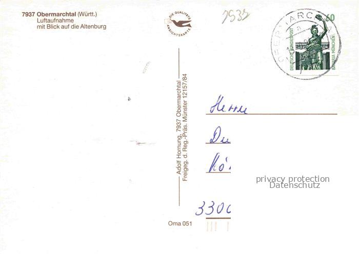 74041149 alte Postkarte Obermarchtal Panorama Blick auf die Altenburg postalisch gelaufen Fliegeraufnahme Erhaltung siehe scans [FriedD77] KatCode: 11110008425090