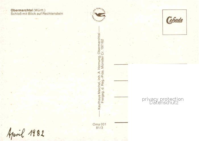 72798800 Obermarchtal Schloss mit Blick auf Rechtenstein Fliegeraufnahme postalisch nicht gelaufen Erhaltung siehe scans [FriedD77] KatCode: 11110008425090