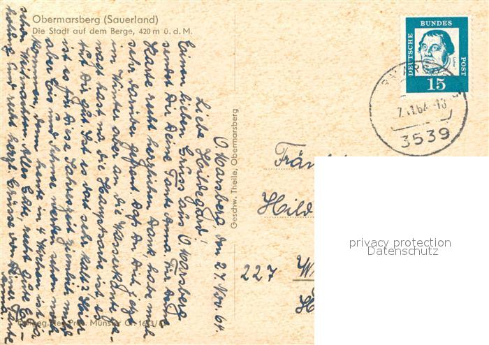 73616376 alte Postkarte Obermarsberg Sauerland Fliegeraufnahme postalisch gelaufen Erhaltung siehe scans [WerneD78] KatCode: 11110005958024