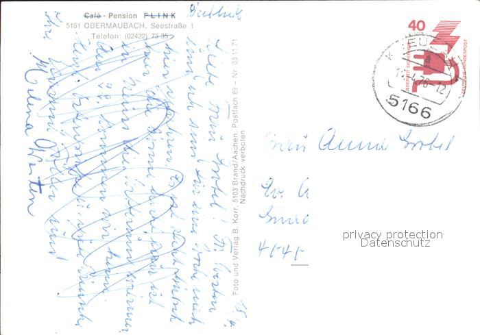 72117809 alte Postkarte Obermaubach postalisch gelaufen Erhaltung siehe scans KatCode: 11110005358028