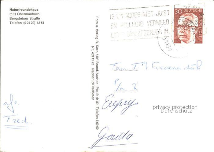 72155455 alte Postkarte Obermaubach Naturfreundehaus postalisch gelaufen Erhaltung siehe scans KatCode: 11110005358028
