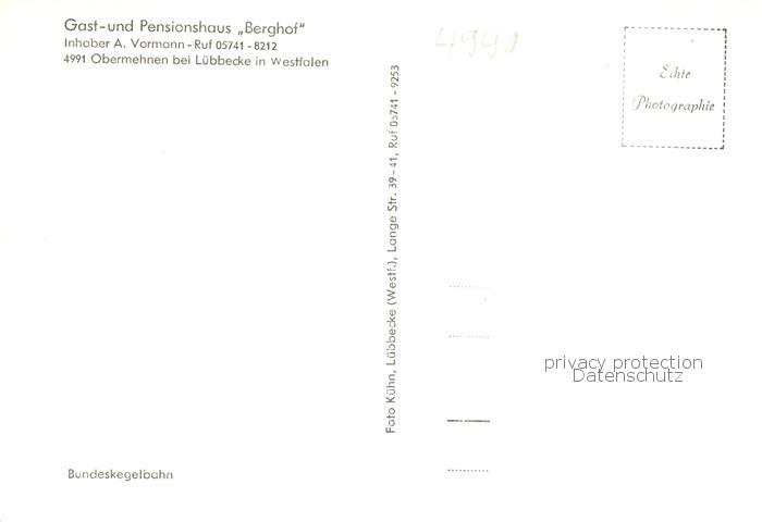 73852559 Obermehnen Gast und Pensionhaus Berghof Gastraeume Bar postalisch nicht gelaufen Erhaltung siehe scans [WerneD78] KatCode: 11110005770020