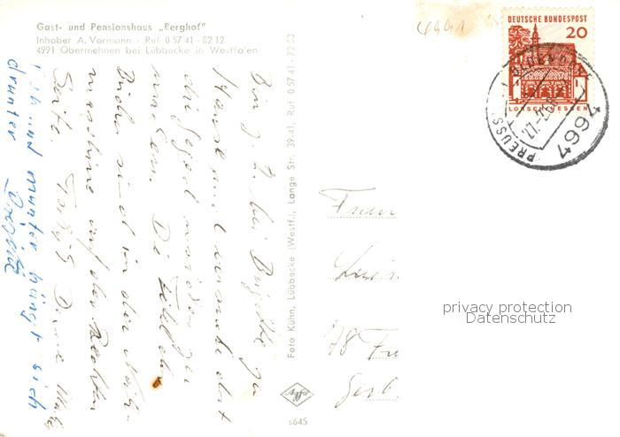 73830939 alte Postkarte Obermehnen Gast und Pensionshaus Berghof Gaststube Bar postalisch gelaufen Erhaltung siehe scans [FriedD77] KatCode: 11110005770020