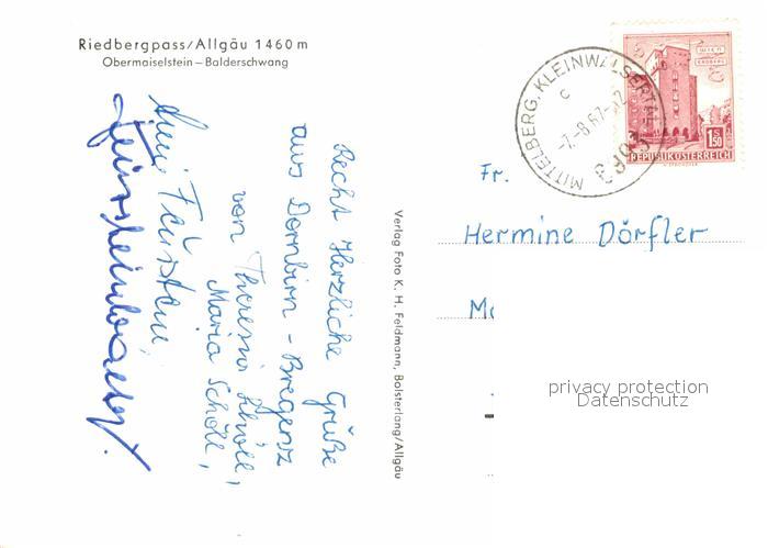 72756911 alte Postkarte Obermeiselstein Oberstdorf Riedbergpass postalisch gelaufen Erhaltung siehe scans [LiesaD40] KatCode: 11110009780133