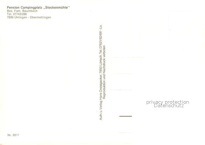 73707680 Obermettingen Pension Campingplatz Stockenmuehle Schluecht Roggenbacher Schloesser postalisch nicht gelaufen Erhaltung siehe scans [WerneD78] KatCode: 11110008337128