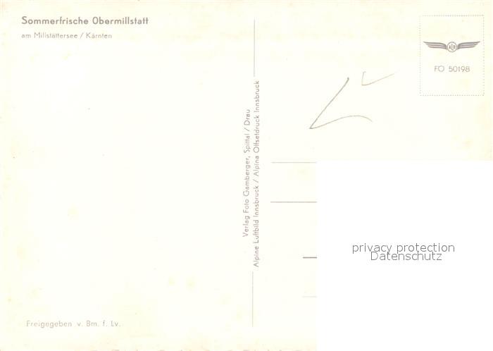 13339127 Obermillstatt Kaernten am Millstaetter See Fliegeraufnahme postalisch nicht gelaufen Erhaltung siehe scans [WerneD78] KatCode: 11390212020620