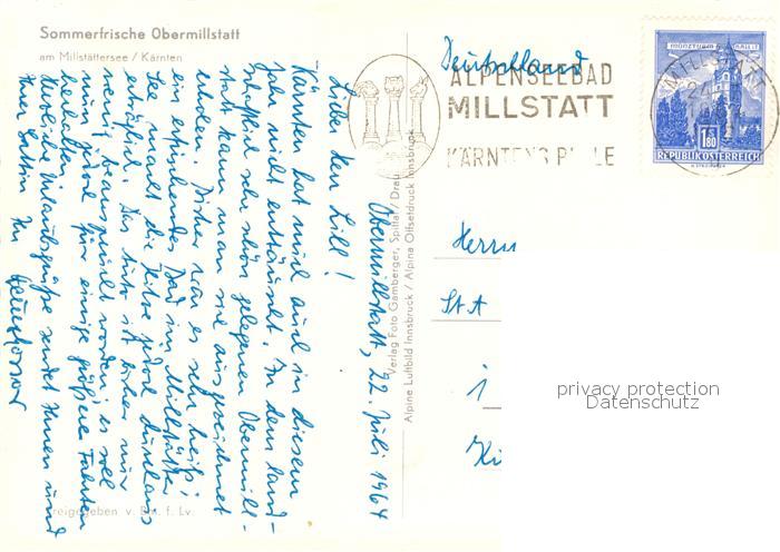 73315376 alte Postkarte Obermillstatt Kaernten Fliegeraufnahme mit Millstaetersee postalisch gelaufen Erhaltung siehe scans [LiesaD40] KatCode: 11390212020620
