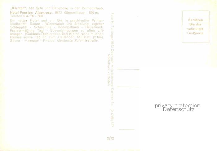 72692353 Obermillstatt Kaernten Hotel Pension Alpenrose Winter postalisch nicht gelaufen Erhaltung siehe scans [KathaD79] KatCode: 11390212020620
