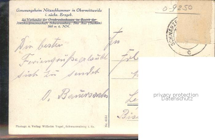 42277941 alte Postkarte Obermittweida Genesungsheim Nitzschhammer postalisch gelaufen Erhaltung siehe scans KatCode: 11110014182280