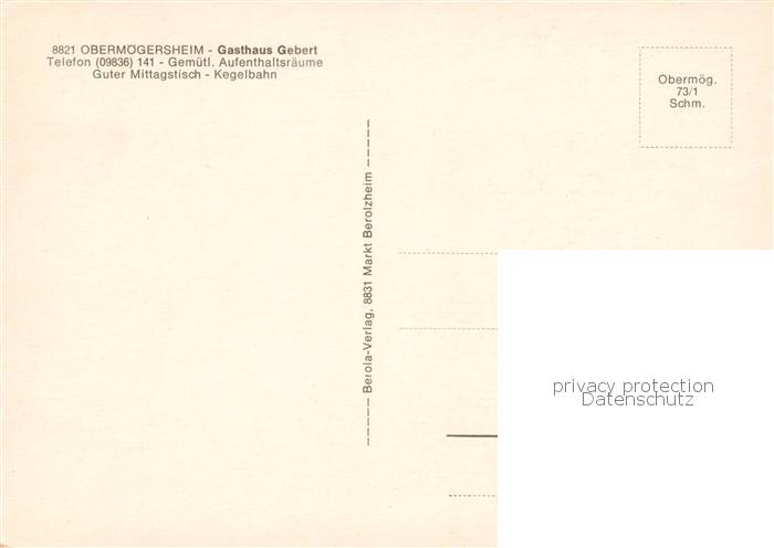 73844732 Obermoegersheim Gasthaus Gebert Gaststube Bar Terrasse postalisch nicht gelaufen Erhaltung siehe scans [WerneD78] KatCode: 11110009571214