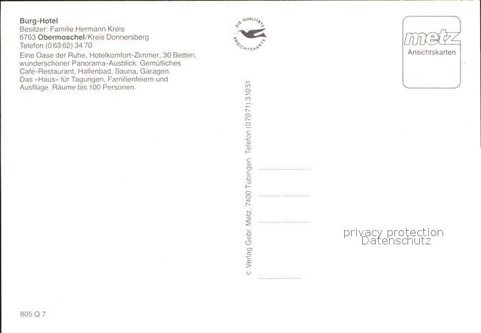 72393218 Obermoschel Ruine Stadtblick Burghotel Zimmer Hallenbad Festtafel postalisch nicht gelaufen Erhaltung siehe scans KatCode: 11110007333054
