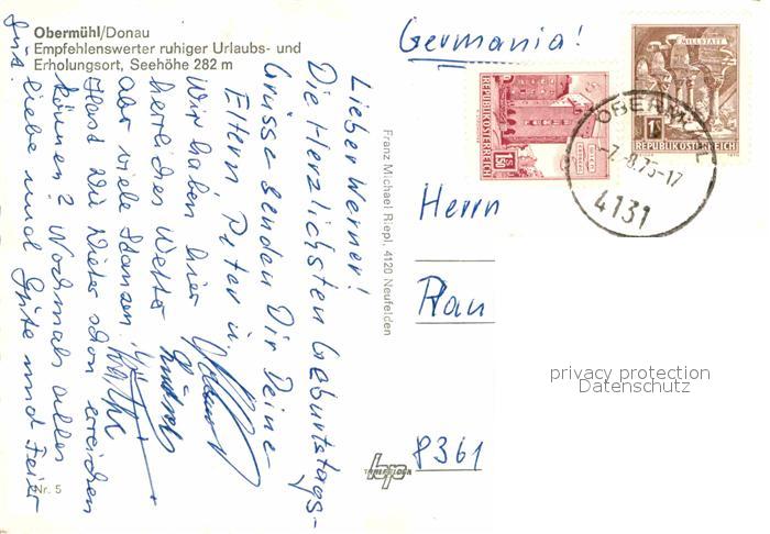 72673332 alte Postkarte Obermuehl Donau Ansicht vom Fluss aus Gasthof postalisch gelaufen Erhaltung siehe scans [FriedD77] KatCode: 11390