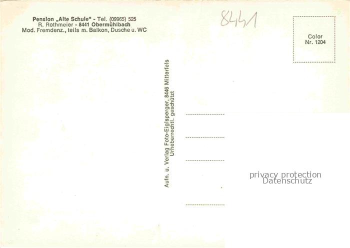 74049262 Obermuehlbach Panorama Bayerischer Wald Pension Alte Schule Gastraum postalisch nicht gelaufen Erhaltung siehe scans [FriedD77] KatCode: 11110009278154