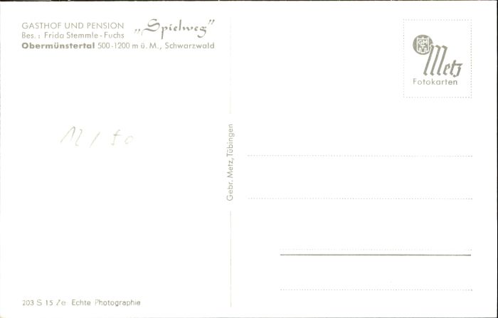 40805479 Obermuenstertal chwarzwald Gasthof Pension Spielweg postalisch nicht gelaufen Alte Ansichtskarte Postkarte Katcode 11110008315130