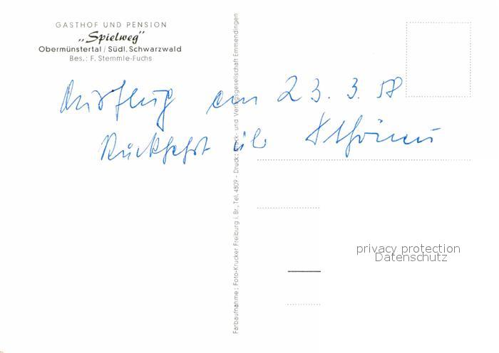 72666422 Obermuenstertal Gasthof Pension Spielweg postalisch nicht gelaufen Erhaltung siehe scans [FriedD77] KatCode: 11110008315130