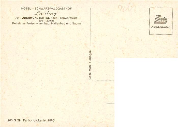 73929386 Obermuenstertal Hotel Schwarzwaldgasthof Spielweg Liegewiese postalisch nicht gelaufen Erhaltung siehe scans [FriedD77] KatCode: 11110008315130