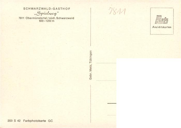 73929385 Obermuenstertal Hotel Schwarzwaldgasthof Spielweg Panorama postalisch nicht gelaufen Erhaltung siehe scans [FriedD77] KatCode: 11110008315130
