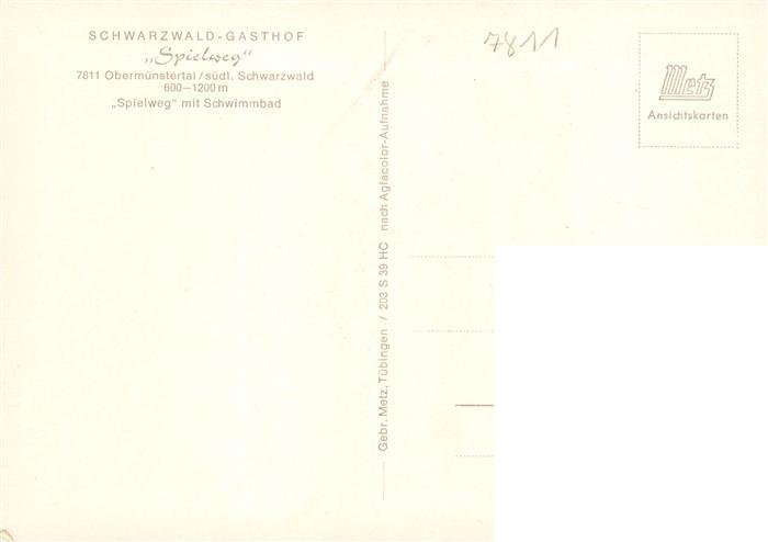 73929825 Obermuenstertal Schwarzwald Gasthof Spielweg mit Schwimmbad postalisch nicht gelaufen Erhaltung siehe scans [FriedD77] KatCode: 11110008315130