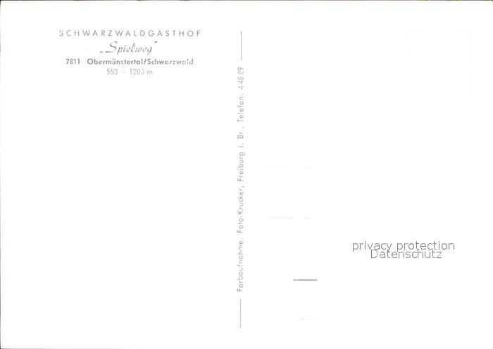 71830766 Obermuenstertal Schwarzwaldgasthof Spielweg postalisch nicht gelaufen Erhaltung siehe scans KatCode: 11110008315130