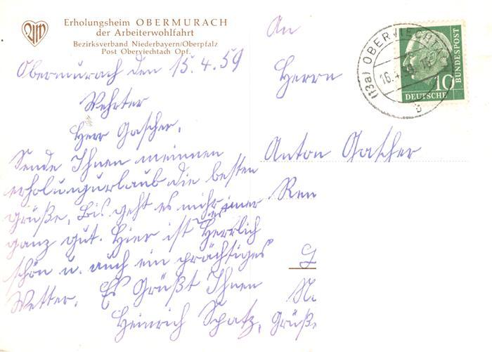 73872216 alte Postkarte Obermurach Oberviechtach Erholungsheim der AWO Burgruine postalisch gelaufen Erhaltung siehe scans [FriedD77] KatCode: 11110009376151