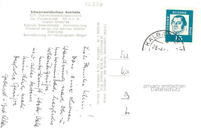 33659153 alte Postkarte Obermusbach Freudenstadt Schwarzwaldkurhaus Auerhahn Gastraum Fliegeraufnahme postalisch gelaufen Erhaltung siehe scans [WerneD78] KatCode: 11110008237028
