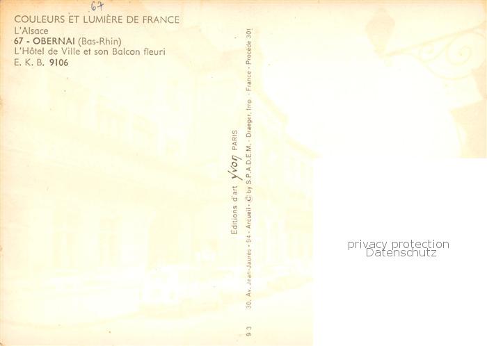 13826372 Obernai Alsace Oberehnheim Elsass 67 Hôtel de Ville et son balcon fleuri Rathaus Altstadt postalisch nicht gelaufen Erhaltung siehe scans [FriedD77] Frie Katcode 11170067567348
