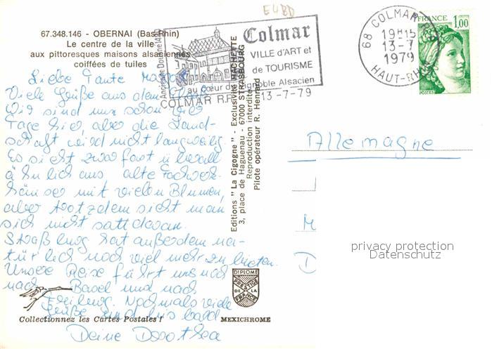 12853037 carte postale Obernai Bas Rhin Centre postalisch gelaufen Erhaltung siehe scans [NatalD47] KatCode: 11170067567348