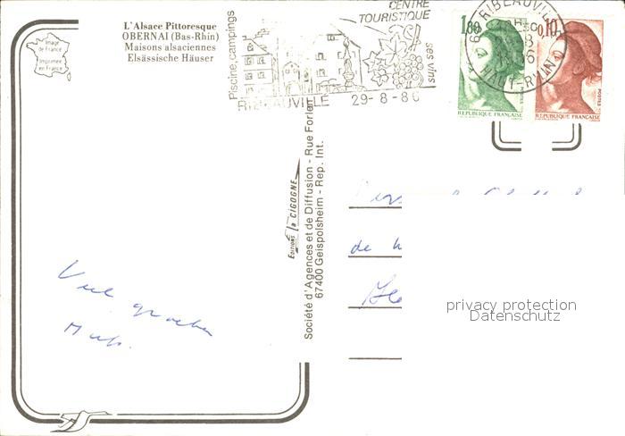 12501151 carte postale Obernai Bas Rhin Elsaessische Haeuser postalisch gelaufen Erhaltung siehe scans KatCode: 11170067567348