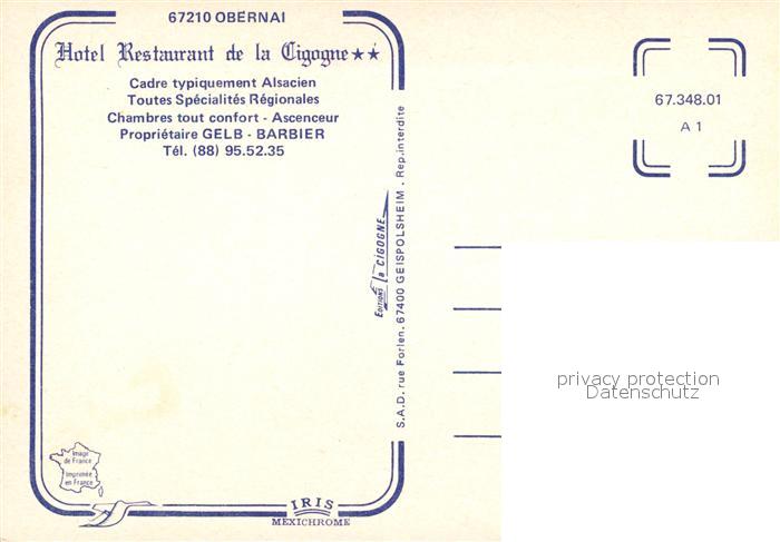 13268702 Obernai Bas Rhin Hotel Restaurant de la Cigogne postalisch nicht gelaufen Erhaltung siehe scans [KathaD81] KatCode: 11170067567348