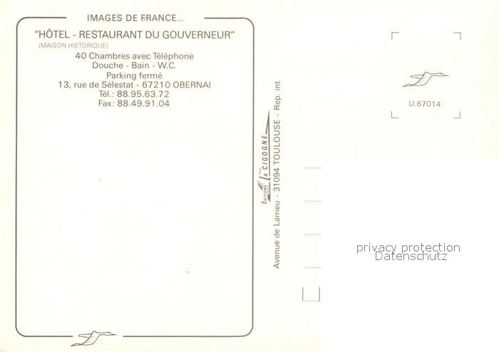 13606745 Obernai Bas Rhin Hotel Restaurant du Gouverneur postalisch nicht gelaufen Erhaltung siehe scans [LiesaD40] KatCode: 11170067567348