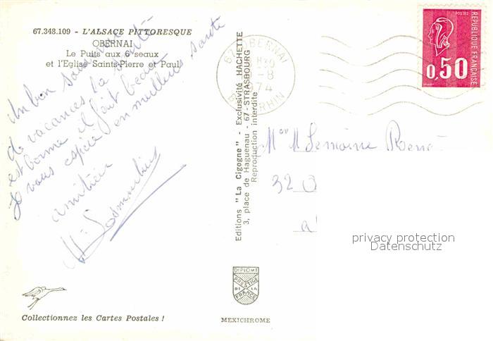 12826054 carte postale Obernai Bas Rhin Kirche Saint Pierre et Paul postalisch gelaufen Erhaltung siehe scans [AndreD76] KatCode: 11170067567348