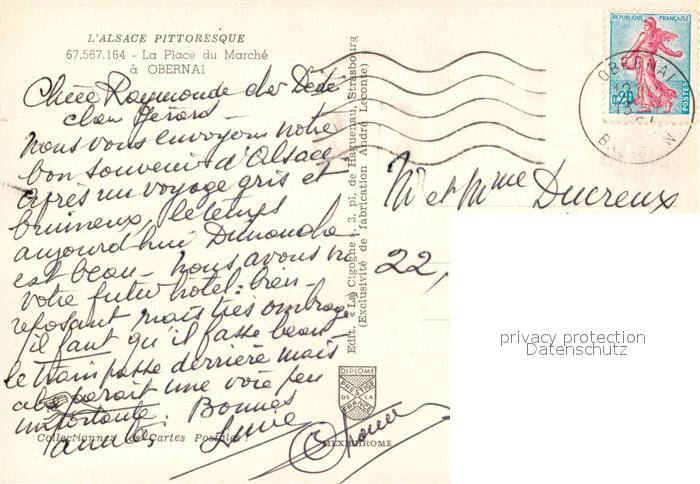 13589745 Obernai Bas Rhin La Place du Marche postalisch gelaufen Erhaltung siehe scans [WerneD78] carte postale Wern Katcode 11170067567348