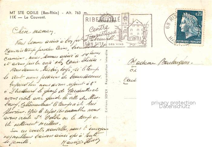 12687360 carte postale Obernai Bas Rhin Mont Sainte Odile Couvent vue aerienne postalisch gelaufen Erhaltung siehe scans [FriedD77] KatCode: 11170067567348